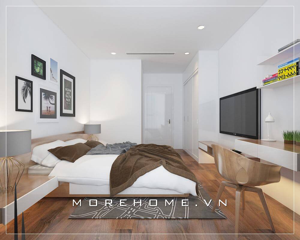 Nội thất phòng ngủ chung cư gỗ công nghiệp hiện đại, nhẹ nhàng không tạo cảm giác bí bách, gò bó cho cả không gian