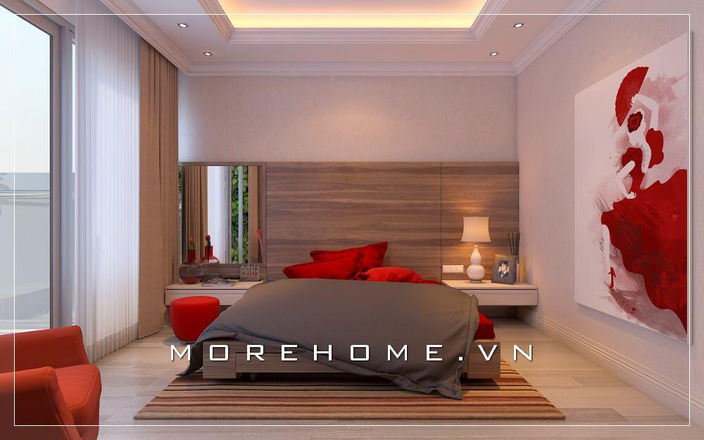 Thiết kế phòng ngủ hiện đại, đơn giản mà vẫn đảm bảo tính tiện nghi trong quá trình sử dụng, chất liệu gỗ công nghiệp được gia chủ lựa chọn chủ đạo trong căn phòng này