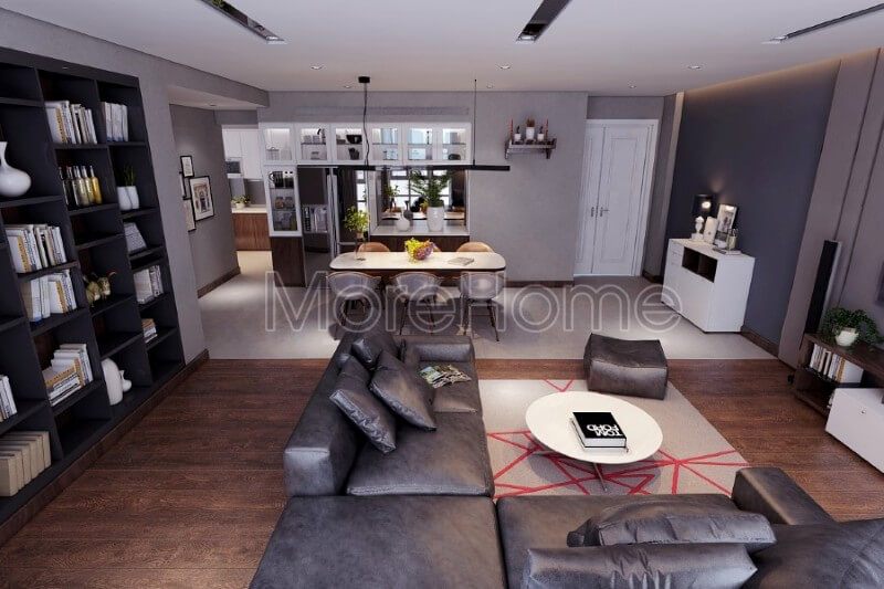 Không gian phòng khách được bố trí vị trí trang nghiêm nhất cho bàn thờ treo tường tổ tiên