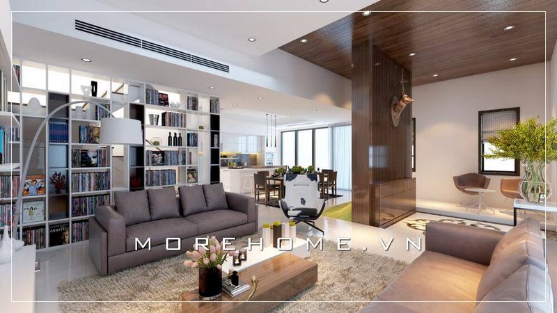 Khi đến gần với phòng khách chung của biệt thự, nhà phố, chúng ta có thể thấy rõ nhất nội thất gần đó. Không gian được trang trí hiện đại với một chút pha trộn của phong cách âu.