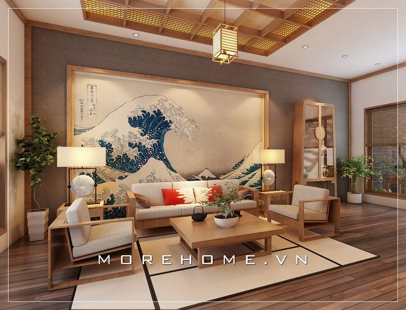 Sofa hiện đại với các đường nét gỗ vuông vắn kết hợp với đệm bọc vải êm ái sẽ làm cho phòng khách căn hộ chung cư trở nên thoải mái, tiện nghi và đầy đủ thoáng đãng.