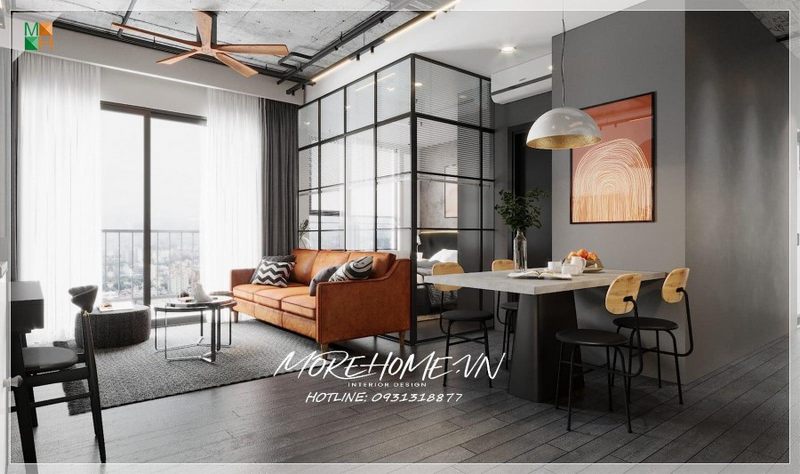 Vách kính trong suốt tạo ra một không gian rộng rãi và thoáng đãng giữa các phòng trong căn nhà.