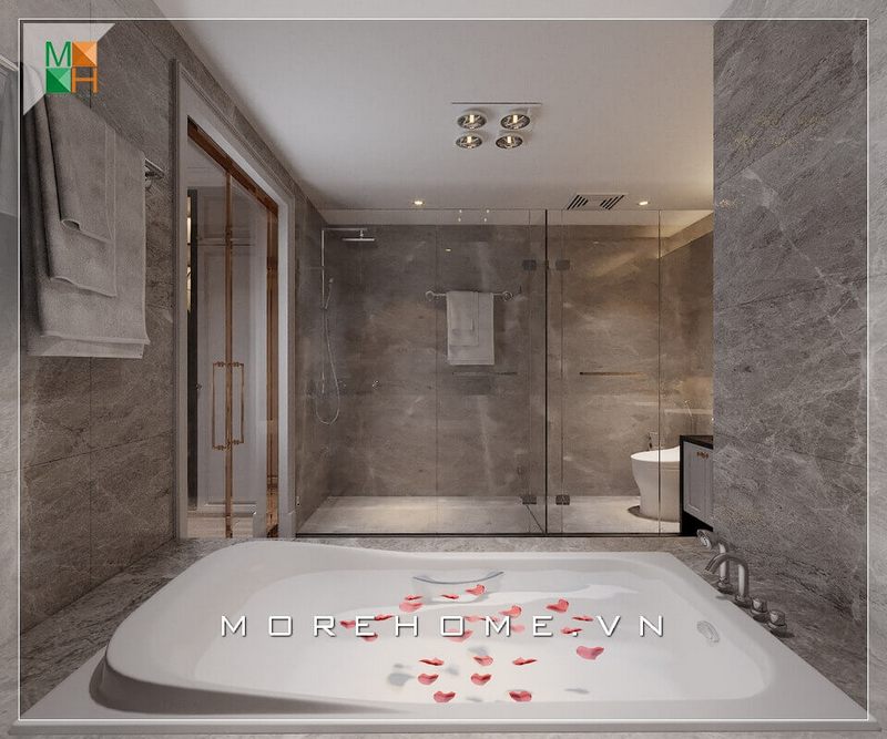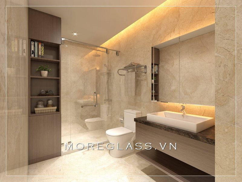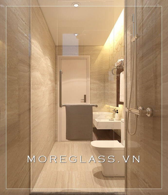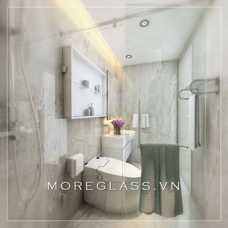 Mẫu phòng tắm được làm từ kính cường lực để phù hợp với căn hộ chung cư cao cấp.